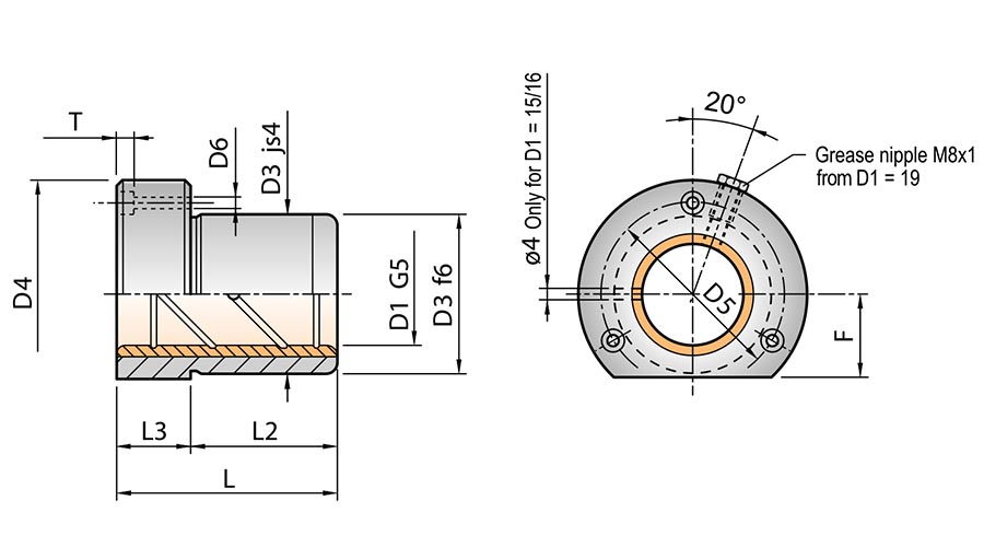 FLANGED GUIDE BUSH, STEEL/BRONZE