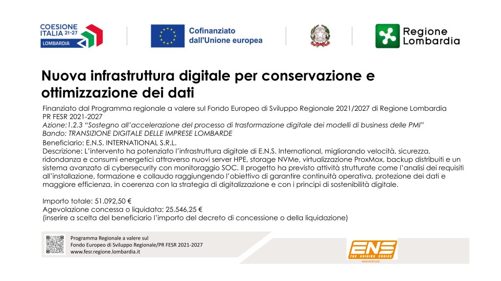 Ens international SRL ha aderito al Bando:  “TRANSIZIONE DIGITALE DELLE IMPRESE LOMBARDE – Sostegno all’accelerazione del processo di trasformazione digitale dei modelli di business delle PMI”